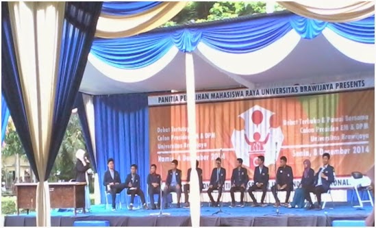 Malang, PERSPEKTIF – Senin (08/12), rangkaian acara Pemilihan Mahasiswa Raya (Pemira) Universitas Brawijaya 2014 sampai pada acara debat terbuka yang diselenggarakan di lapangan Rektorat Universitas Brawijaya. Ketiadaaan Divisi Acara di tempat debat terbuka membuat panitia Pemira yang lain kelimpungan. Acara pun terlambat hampir dua jam.