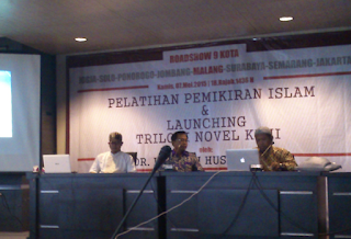 LAUNCHING – Adian Husaini mengisi Pelatihan Pemikiran Islam dan Launching Trilogi Novel KEMI di Hall lantai 7 Fakultas Ilmu Sosial dan Ilmu Politik, Kamis (7/5).