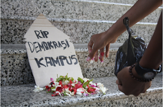 Bagaimana meletakkan sudut pandang atas fenomena ini memang saya kembalikan terhadap yang membaca dan mungkin menyaksikan serta mengalami secara langsung. Yang jelas, kehidupan dalam kampus yaitu tempatnya penempaan manusia-manusia akademis haruslah dibentuk kondisi yang membangun dan tidak mengekang. Karena selama ini tanpa kita sadari kehidupan mahasiswa semakin ditenggelamkan dalam suatu kebudayaan bisu. Apabila meminjam pandangan dari Paulo Freire dalam bukunya Pendidikan Kaum Tertindas, bahwa sebenarnya pendidikan harus berfungsi sebagai sarana yang digunakan untuk mempermudah integrasi generasi muda ke dalam logika dari sistem yang sedang berlaku dan menghasilkan kesesuaian terhadapnya, atau ia menjadi praktek kebebasan. Yakni sarana dengan apa manusia berurusan secara kritis dan kreatif dengan realita, serta menemukan bagaimana cara berperan serta untuk mengubah dunia mereka. Maka seharusnya sebuah lembaga pendidikan tinggi haruslah menyediakan lahan dan akses untuk praktek kebebasan berkarya dan berekspresi. Sehingga tidak lagi kampus-kampus mencetak generasi-generasi robot yang bergerak dibawah kendali sistem sampai mereka tidak bisa mengendalikan diri mereka sendiri.