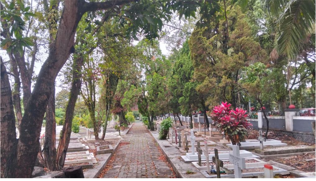 Terik sinar mentari yang menyinari setiap deretan blok area pemakaman, menghasilkan kilauan pada nisan-nisan yang ada di sana. Tak sedikit di atas jejeran nisan tersebut ditemui bunga-bunga segar yang ditinggalkan, sebagai penanda hadirnya sanak keluarga dekat yang tak pernah lupa memanjatkan do’a dan menyalurkan rasa rindu pada sosok-sosok yang sudah puluhan tahun lamanya terkubur di bawah tanah pemakaman tersebut.